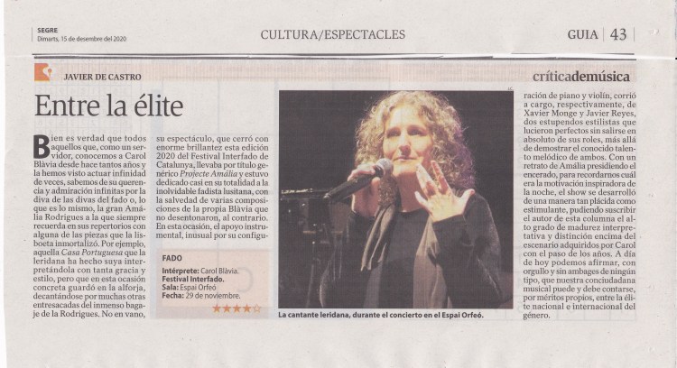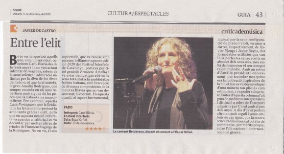 Avui dimarts 15 de desembre de 2020, ha sortit al diari @elsegre la crítica musical del concert de clausura del #festivalinterfado que ja ha superat, i aquest any li escau molt bé això de superat, la 9a edició.